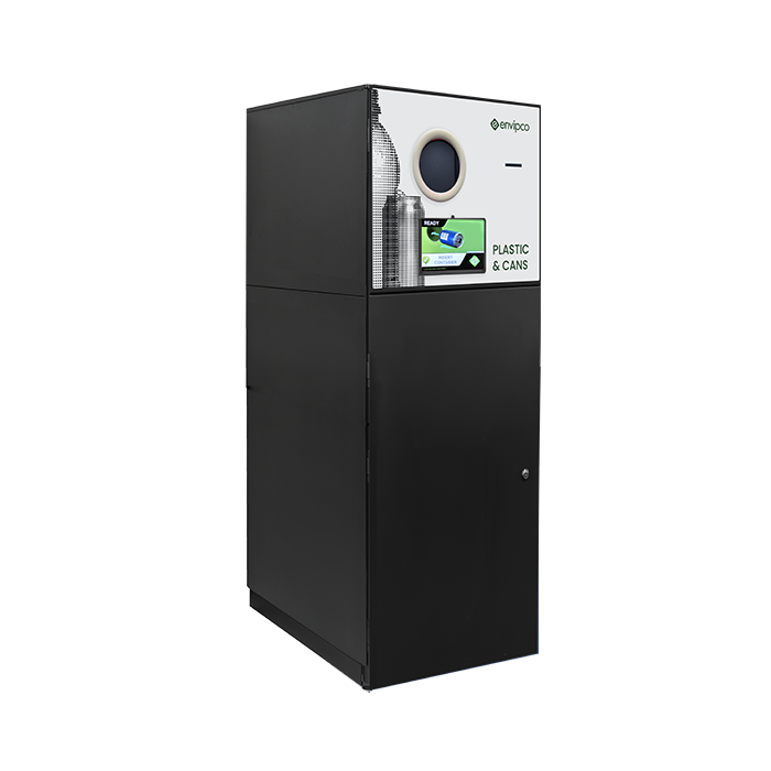 Envipco’nun depozito iade makinesi modeli, bakkallar, eczaneler, benzin istasyonları ve okullar gibi küçük alanlara ve düşük hacimli içecek ambalajı geri dönüşümüne sahip geri dönüşüm noktaları için idealdir.